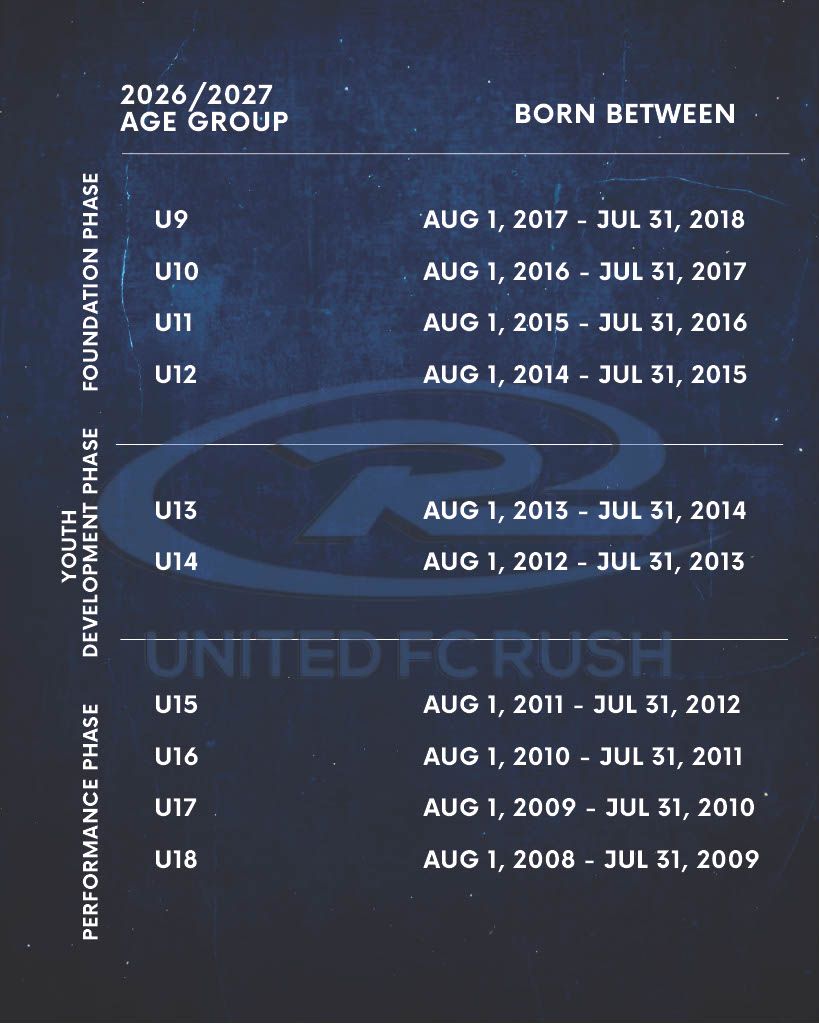 For 2026-27 tryouts, players will try out based on their date of birth (see table)